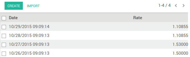 Click on Create to add the rate. Fill in the date and the rate. Click on Save when you are done.