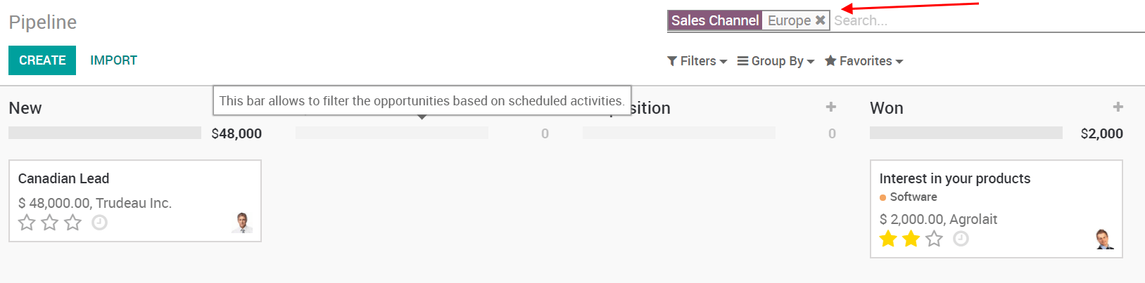 If you now filter on this specific channel in your pipeline, you will find all of its opportunities.