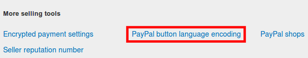 Now you must change the encoding format of the payment request sent by Odoo to Paypal. To do so, get back to My selling tools and click PayPal button language encoding in More Selling Tools section.