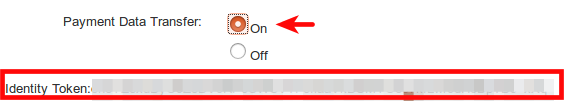 Turn on Payment Data Transfer. When saving, an Identity Token is generated. You will be later requested to enter it in Odoo.