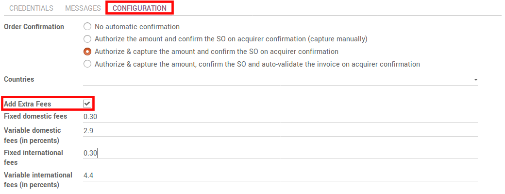 To activate this, go to the Configuration tab of Paypal config form in Odoo and check Add Extra Fees. Default fees for US can be seen here below.