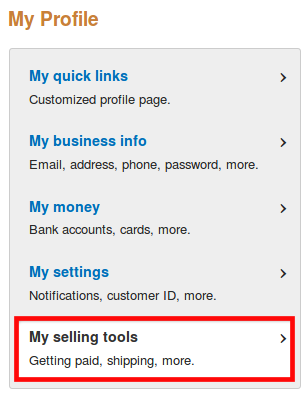Then, get back to your profile to activate the Instant Payment Notification (IPN) in My selling tools.
