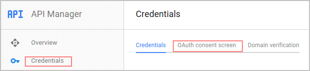 - On the left side menu, select the sub menu Credentials (from API Manager) then select OAuth consent screen.