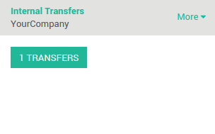 Go back to the Inventory dashboard. The waiting transfer is now ready. Click on the link # TRANSFERS in the Internal Transfers card to process the quality control.