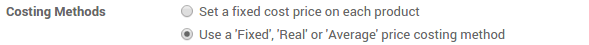 Then go to the . Choose costing method Use a ‘Fixed’, ‘Real’ or ‘Average’ price costing method, then click on Apply to save changes.