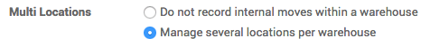 In order to be able to create new locations, you must allow the system to manage multiple locations. In the Inventory module, open the menu . In the Location & Warehouse section, tick the Manage several locations per warehouse box, then click on Apply.