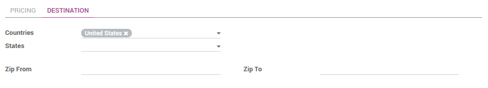 Finally you can limit the delivery method to a few destinations. You can limit it to some countries, states or even zip codes. This feature limits the list of countries on your e-commerce. It is useful for the domestic providers. For example, USPS US only delivers from the United States to the United States.