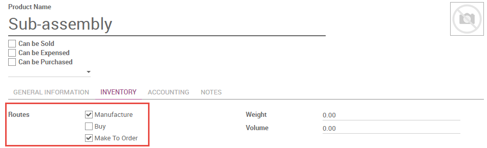 If you would like to be able to purchase the subassembly in addition to manufacturing it, select Can be Purchased. All other fields on the subassembly product form may be configured according to your preference.