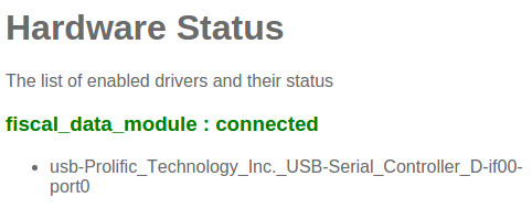 In order to use a Fiscal Data Module, you will need a registered POSBox. These POSBoxes are similar to the regular POSBoxes we sell, but they are registered with the Belgian government. This is required by law. Attempting to use a Fiscal Data Module on a non-registered POSBox will not work. You can verify that the Fiscal Data Module is recognized by the POSBox by going to the Hardware status page via the POSBox homepage.