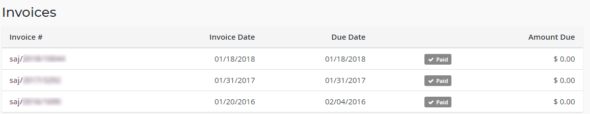 All the invoices of your subscription(s), or generated by a sales order, will be shown in this section. The tag before the Amount Due will indicate you if the invoice has been paid.