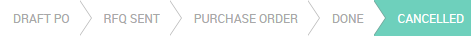 Odoo will automatically cancel the outstanding shipments related to this PO and the status bar will switch from Purchase order to Cancelled.