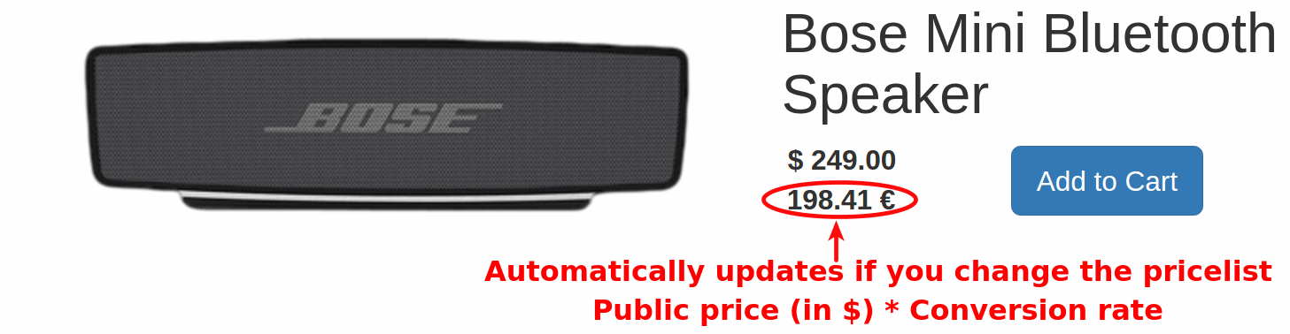 - Create one pricelist per currency. A new Currency field shows up in pricelist setup form.